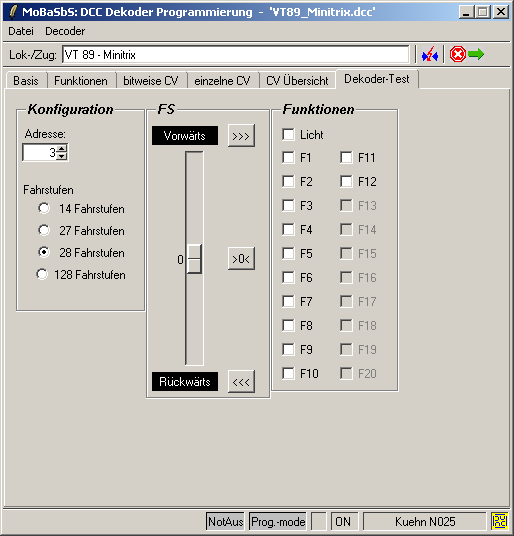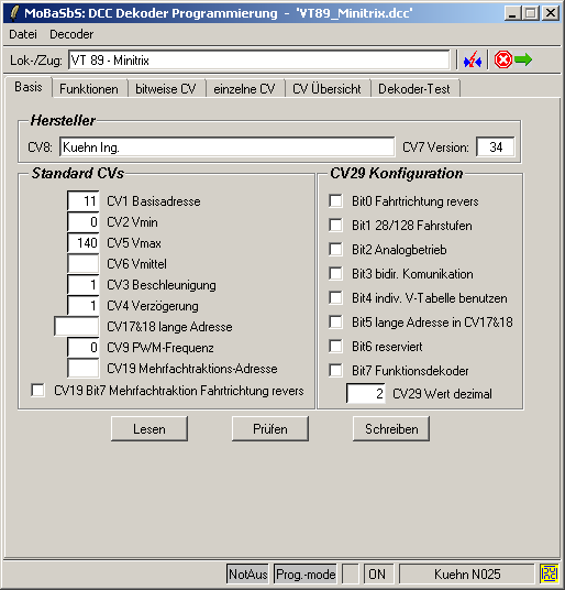 Lok-Dekoders im DCC Format aus dem Dekoder zu lesen, zu verändern und