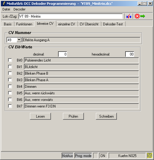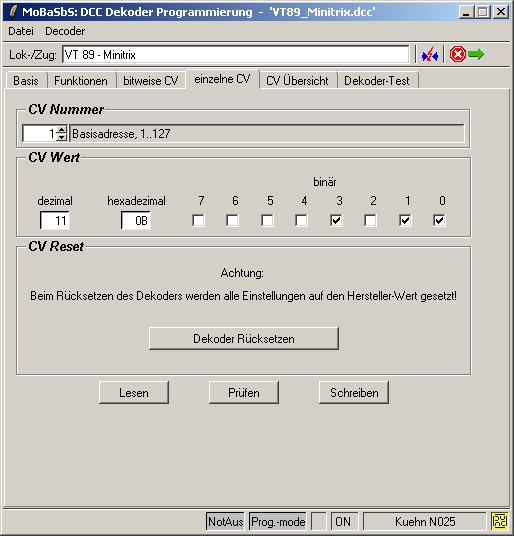 Ist die CV ausgewählt und ggf. ihr Wert aus dem Dekoder gelesen, kann