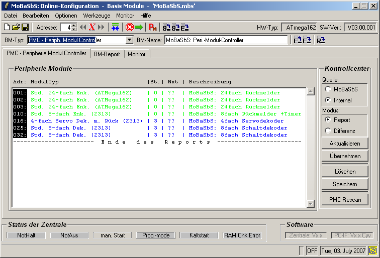 Peripherie-Module analysiert und die Ergebnisse in die interne Datenbasis