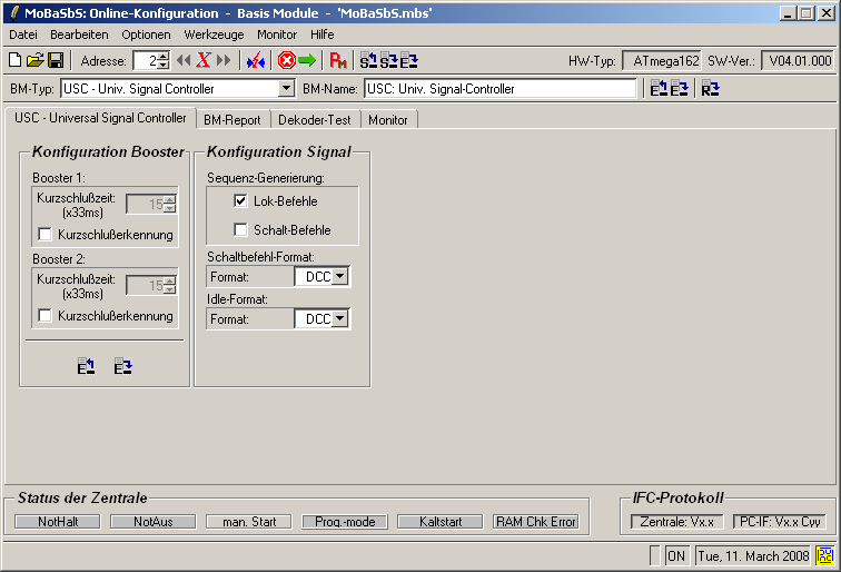 und Schaltbefehle das Protokol (DCC/MM2, DCC ist der Default-Wert)