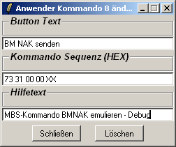Ein Kommando wird durch Drücken des Knopfes 'Schließen' gespeichert und