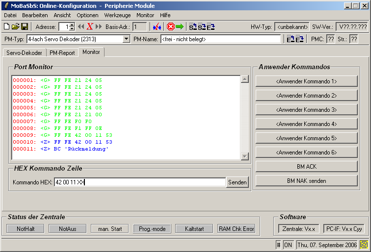 Konfigurations-Software und MoBaSbS-Hardware. Jeder Befehl/Befehlssequenz