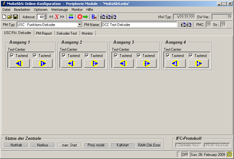 Über dieses Register können ausschließlich manuell USC gesteuerte Funktionsdecoder